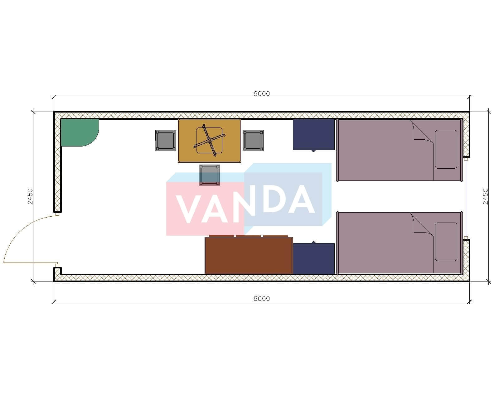 Металлическая бытовка с тамбуром 5,85 x 2,4 - Оргалит ДВП