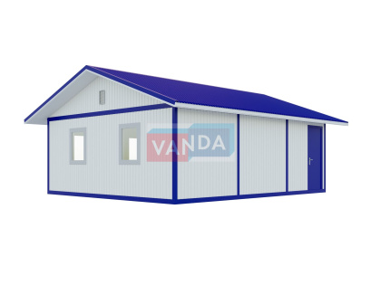 Наружная сторона здания и крыша покрыты оцинкованным листовым металлом. Утепление производится с использованием фольгированного полотна. Для обеспечения пароизоляции стены и пол выкладываются технической пленкой. Пол состоит из слоев: доска, лаги, утеплитель, доска шпунтованная, бытовой линолеум. Крыша офисной бытовки произведена путем сваривания металлических листов и представляет собой прочную цельную конструкцию.