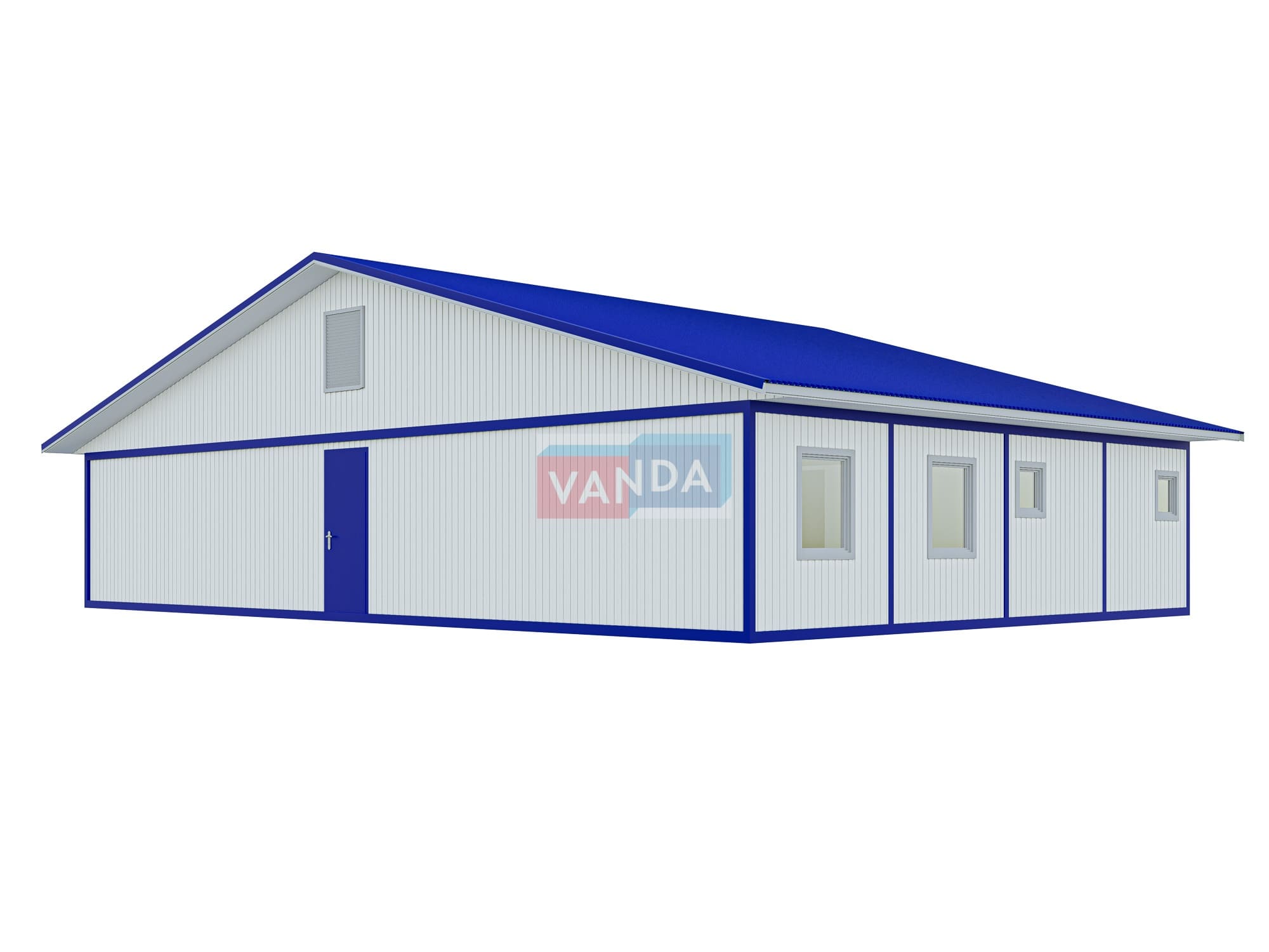 • Общая кровля - двухскатная, деревянные фермы, профлист с полимерным покрытием.
